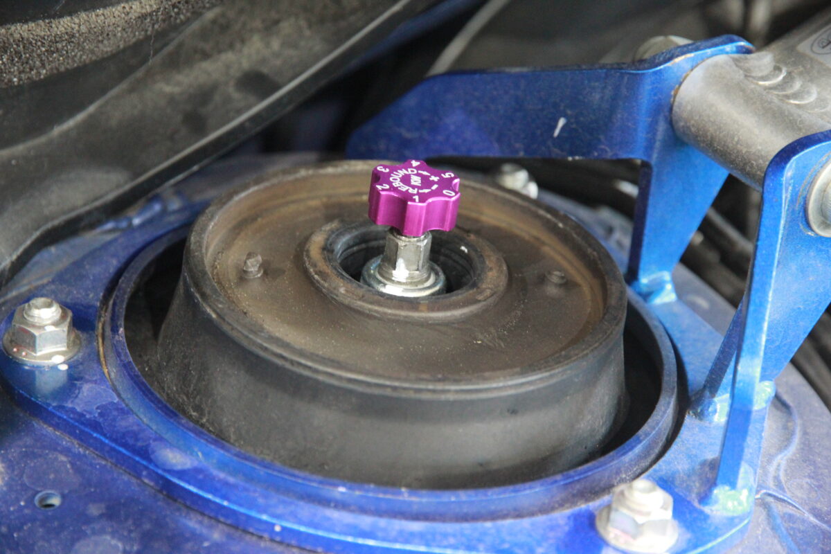 減衰力に関して、フロントはボンネットを開ければ伸び側の調整が可能。