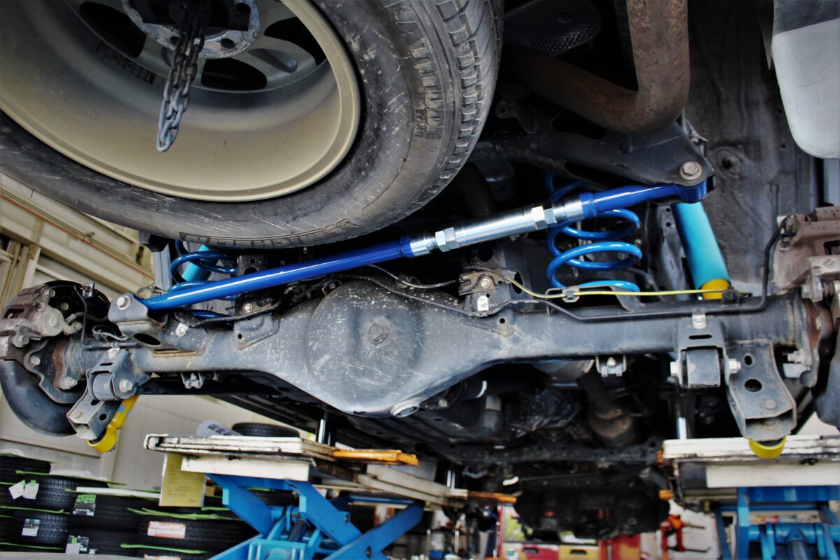 リアの軸補正として調整式ラテラルロッドを取付。