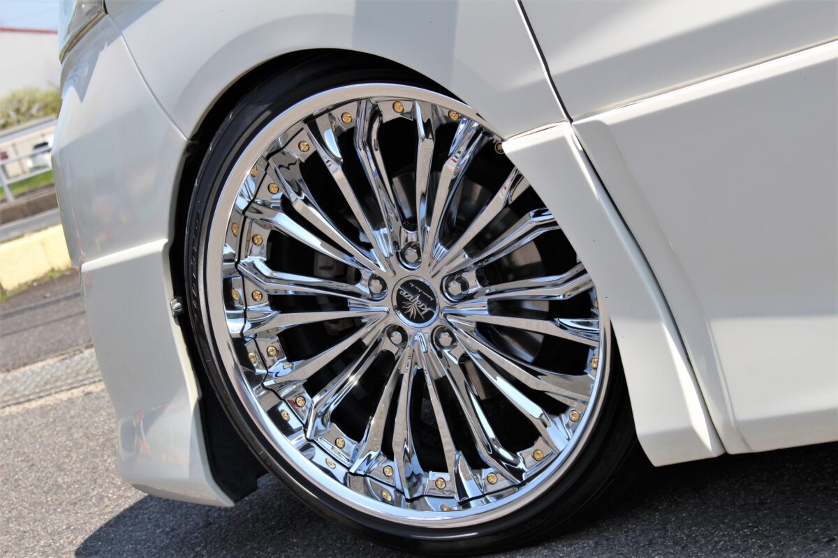 ペタッと落とした車高に20インチを低偏平で引っ張り。