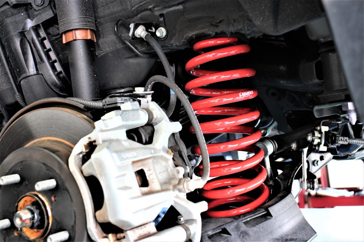 フロントの作業は純正を一旦外して、スプリングだけ入れ替えて行きます。
