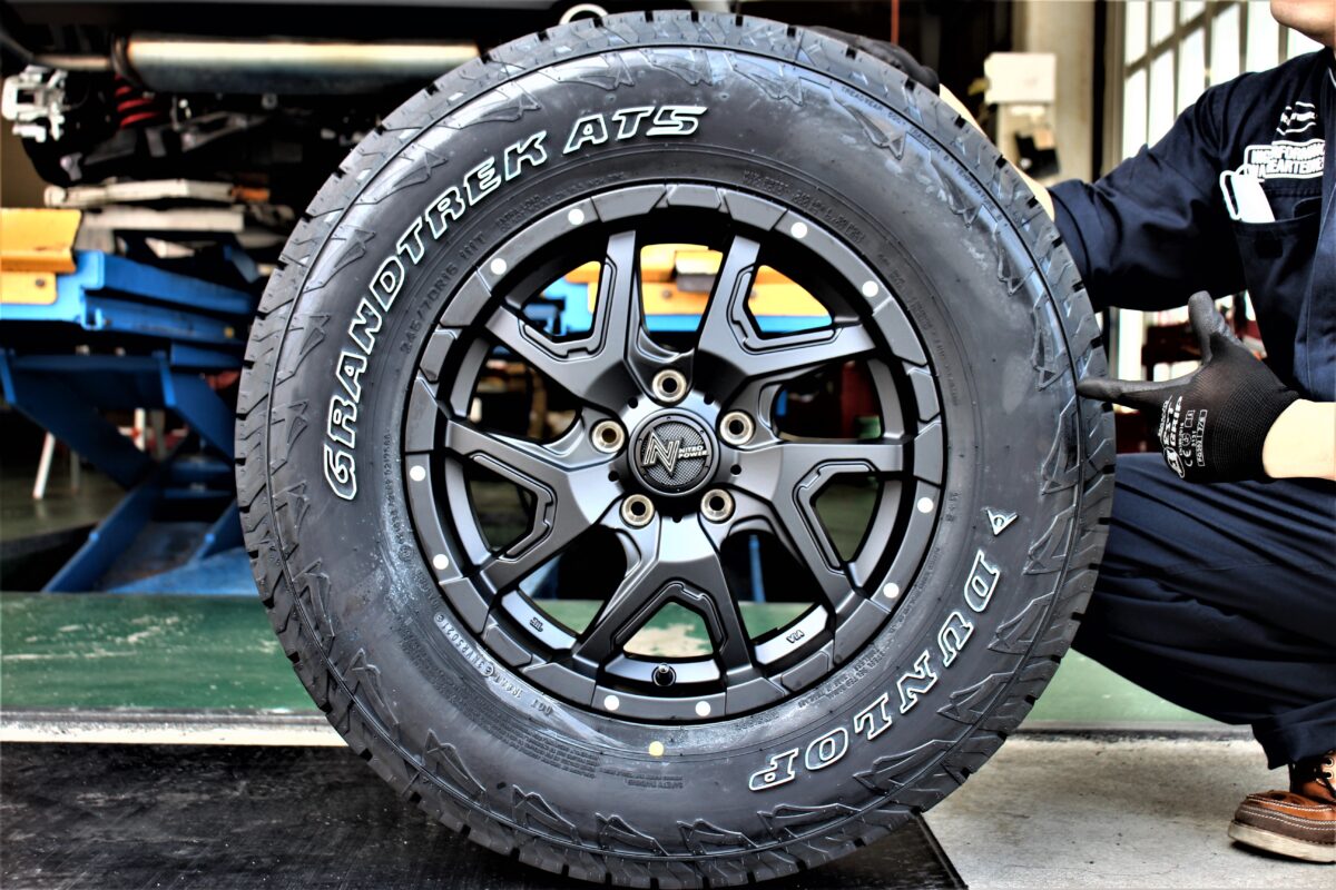 本日の施工はサスペンションの取り付け【リフトアップ】&タイヤホイール取り付けを行い