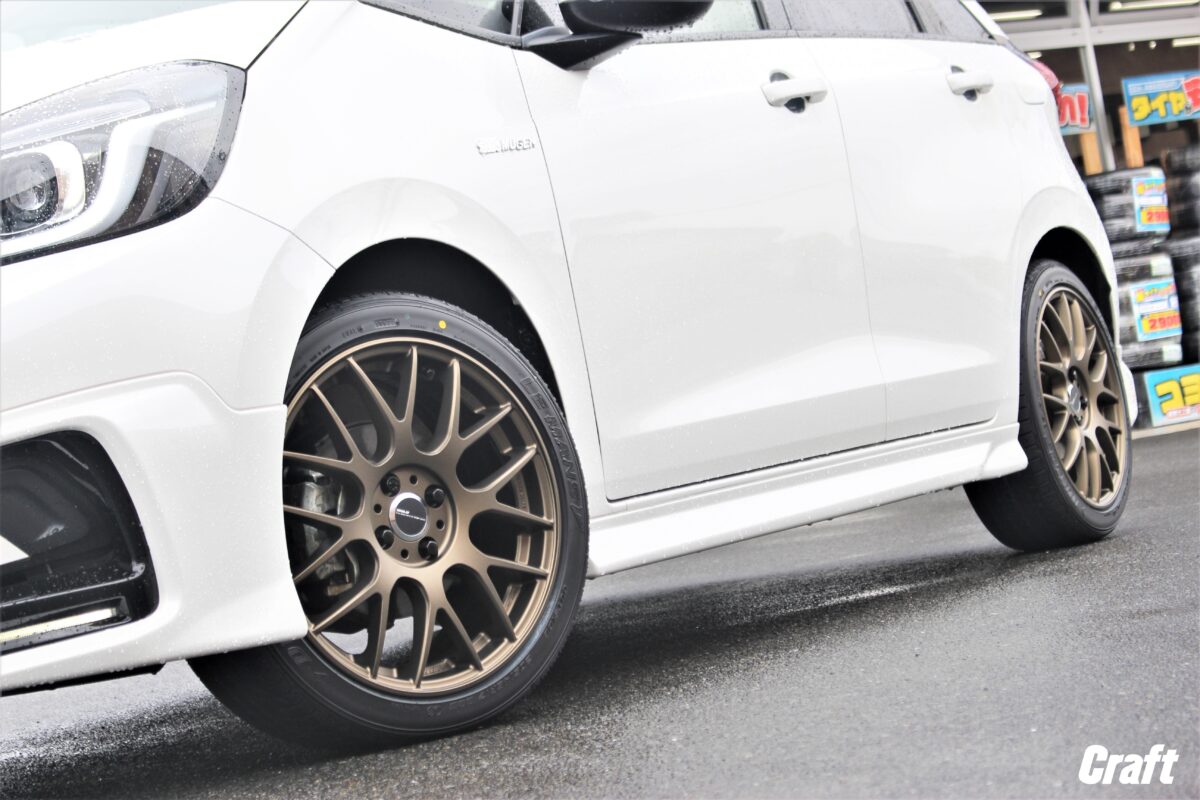 A様・フィットはエアロ装着車なのでスポーツタイプのホイールも良く似合いますっ 👍