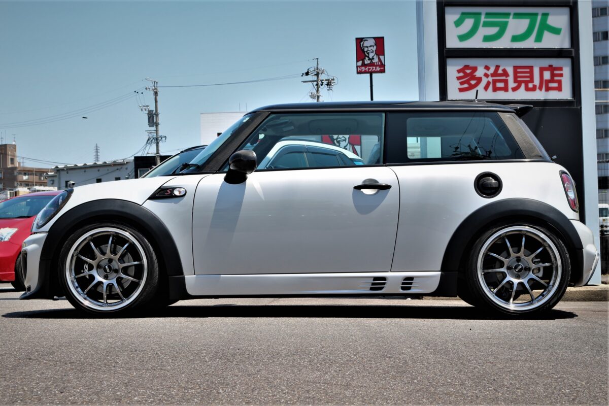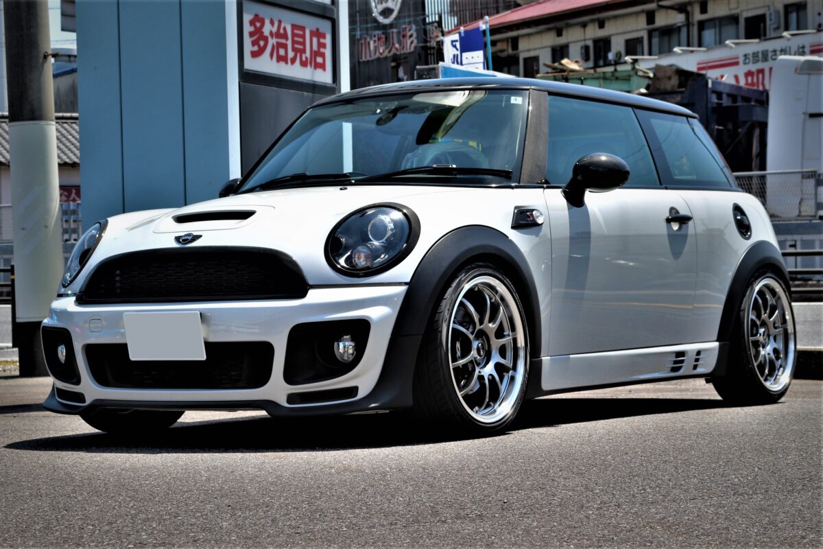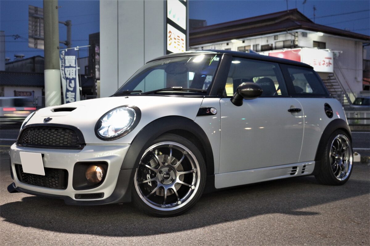 夏仕様にはアドバンレーシングを装着中のR56ミニクーパーS。