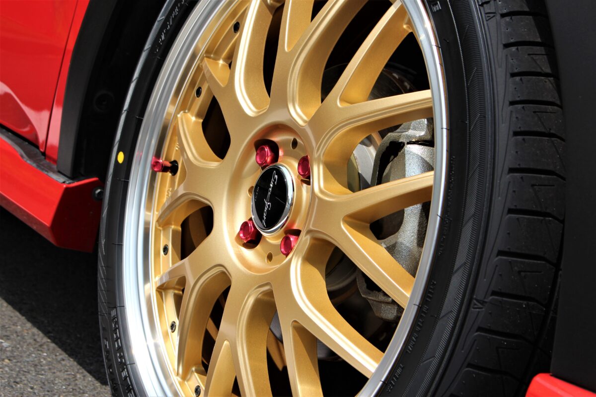 これまで装着されていたブラック×レッドのホイールからガラッとイメージを変更。