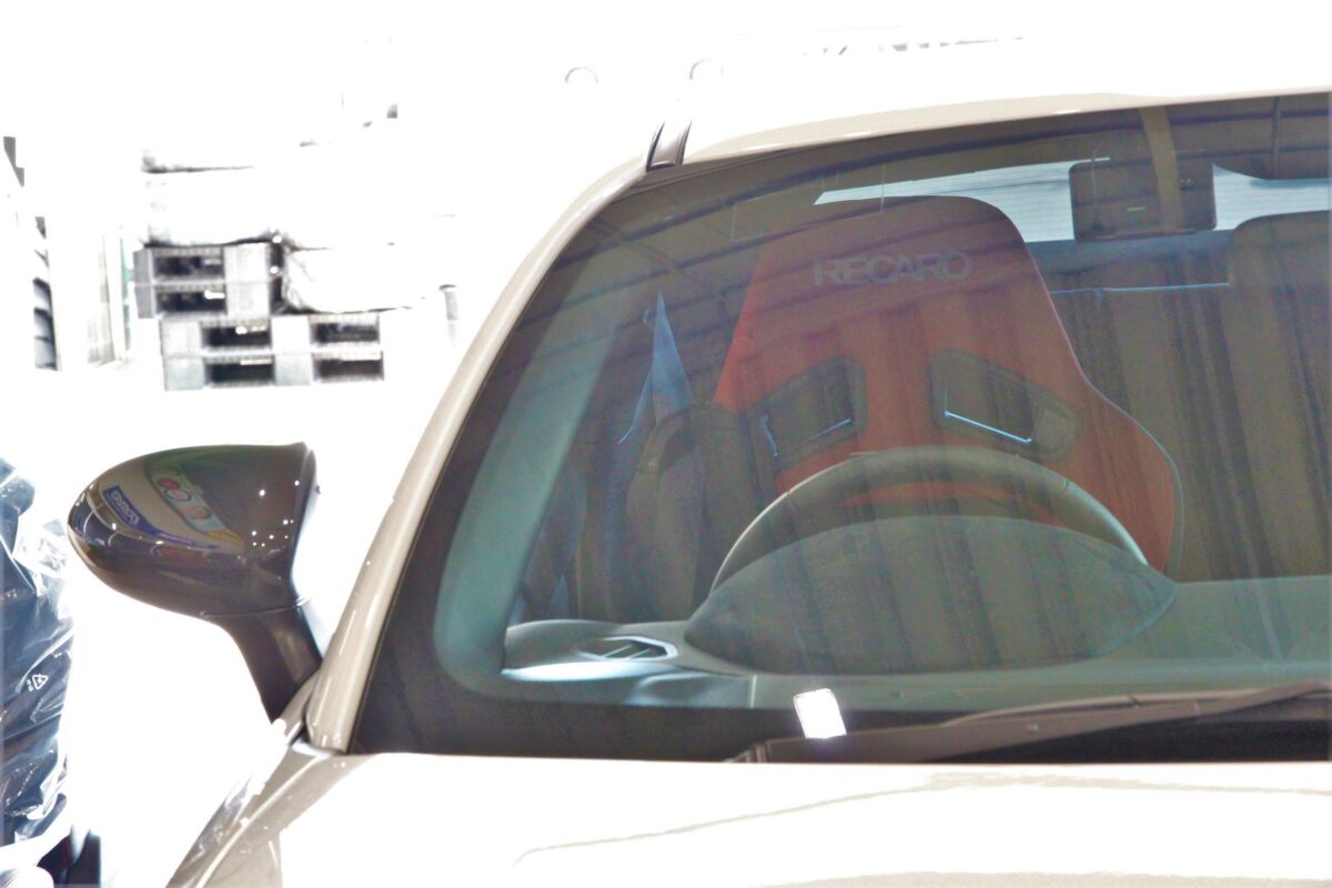 窓枠からレカロのロゴがかっこいい