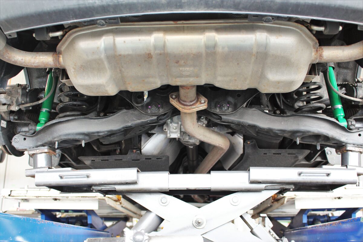 タイヤ・ホイール、純正サスペンションを外していきます。