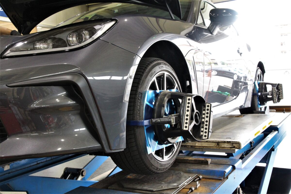 オーナー様の理想の車高までローダウンが終われば4輪アライメントの調整作業へ。