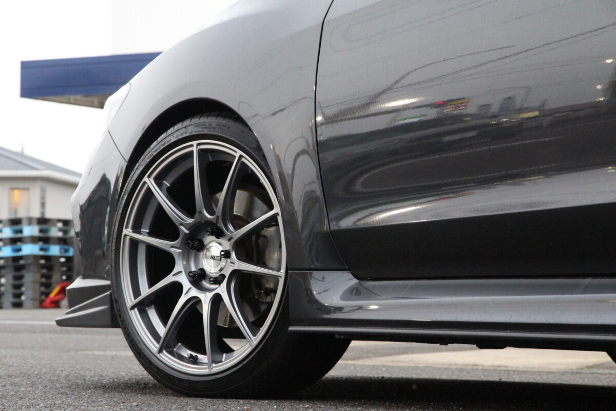 さらっと履きこなしておりますが、もちろん車高調でのローダウン必須のホイールサイズ。