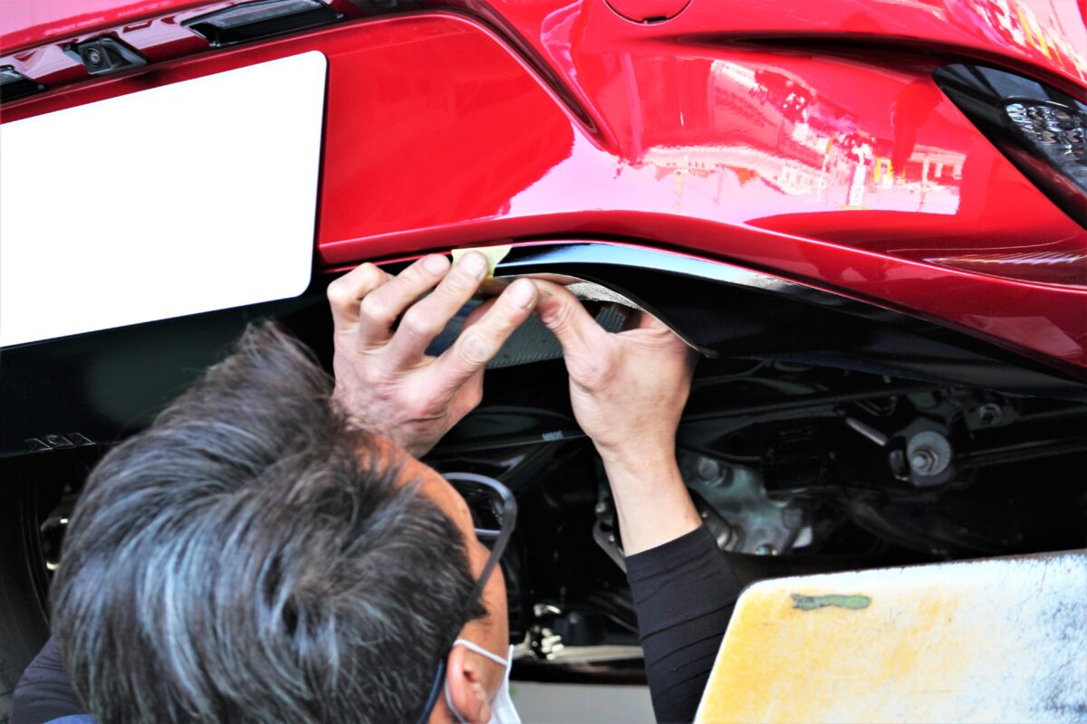 取り外し後は、バンパー部に遮熱シートを取付けていきます。