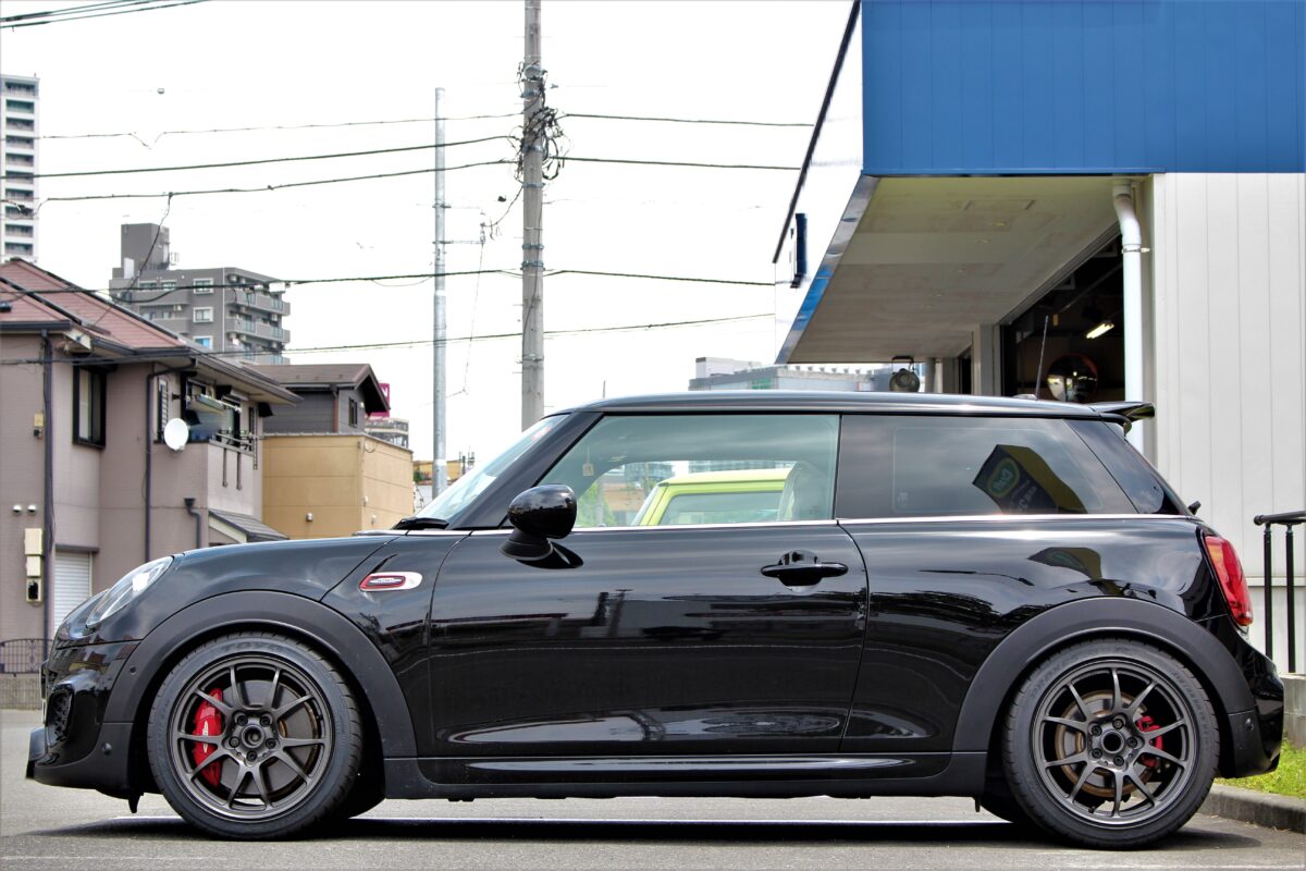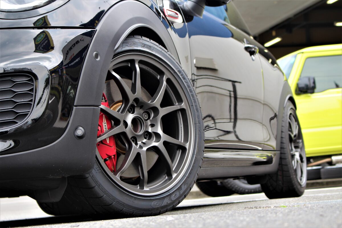 軽量鍛造ホイールのTWSに走りのプロクセスR1Rを組みわせた本気なMINI。