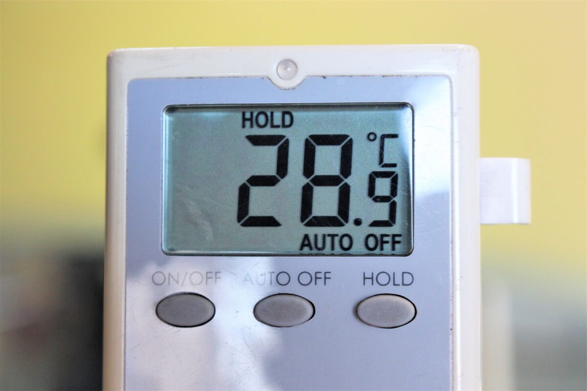 まずは現状を知るため、エアコン風量MAX・最低温度・内気循環に設定し、