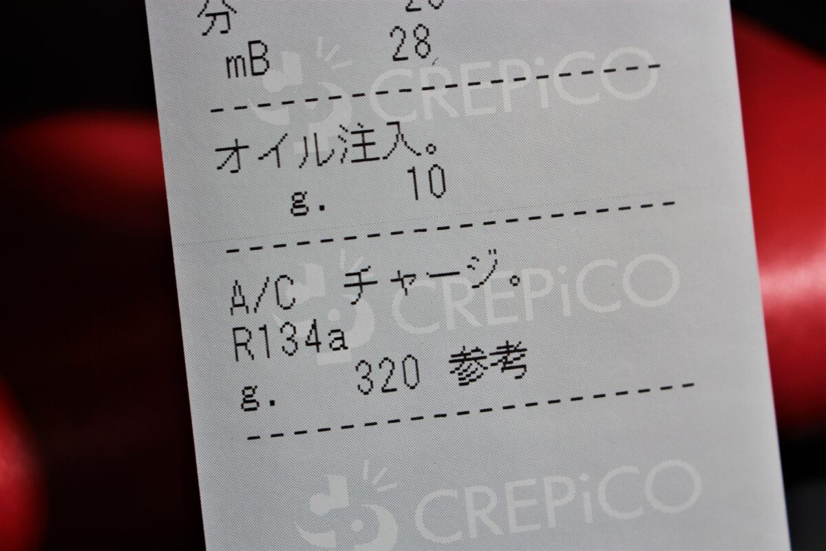 施工後エアコンガス量は320g。