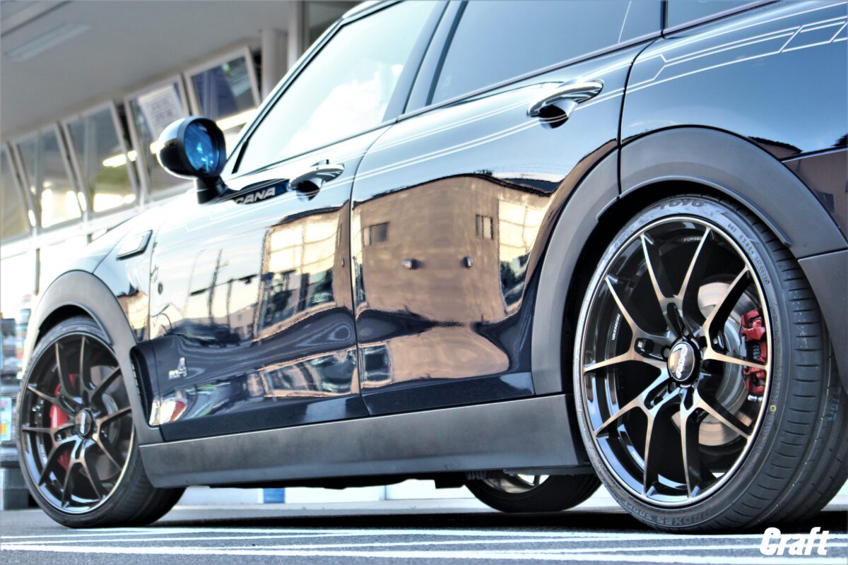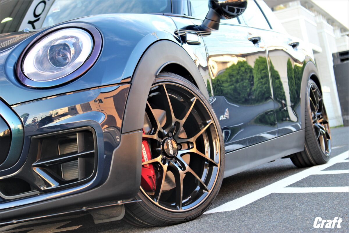キャリパーへの干渉問題を抱えるJCW。。。 輸入車の場合はロングボルト&スペーサーで解決しましょう!!     いつもありがとうございます、クラフト厚木店・佐藤です!!   本日のご紹介は埼玉県からお越しのM様・MINIクラブマン F54となります。   見ての通り、JCW特有のビッグキャリパーを装着しているおクルマですが。。。   キャリパーへの干渉度合いを計算し無事装着完了っ 👍   それではコチラをご覧くださ~い✨     ご購入いただいたアイテムは 「 RAYS VOLKRACING G025 19インチ 」   カラーは新色の ダークアンバーブロンズ をチョイス!!   このカラーはなかなか渋~く、そして良い色味でしたよっ♬♬   撮影した時間が夕方であった事から夕日と言うエフェクトも加わりブロンズ効果が高まった1枚に。     コチラのホイール、デザイン天面は 「 切削仕上げ×ブロンズクリア 」 となっています。   そしてスポークサイドやリム周辺がブロンズ調の塗装で仕上げられています。   先程も記載しましたが、夕日と言うエフェクトも加わっているので実際はもう少し薄いカラーとなります。   実際に見ていただくのがイメージを掴みやすいと思いますが、なかなかサンプルをご用意出来ない現状。   オーナー様も実物を見ていない状態でのご購入となりましたが、とても気に入っていただけましたよぉ~♬♬     そしてマッチングについてお話させていただきますね!!   まずは 「 ボディーに収まるサイズ 」 と言う所から選んで行く訳ですが、その場合はどうしてもキャリパーへの干渉が発生してしまいます。汗   そこで諦めるか。。。なんとかして装着したい。。。となるかはオーナー様次第。   今回はどうにかして装着出来ないかなぁ~と言うご相談でした!!   そこでキャリパーへの干渉度合いを調べ対策する事に。。。     メーカーさんから入手した情報を元に スペーサー を準備!!   国産車の様にハブボルトタイプのクルマではスペーサーを装着する事はオススメ出来ませんが。。。   MINIは輸入車と言う事もありロングボルトを用意すればOK。   そんな下準備もあり無事に装着する事が出来ましたよぉ~♬♬   これから愛車のカスタムをお考えのオーナー様でブレーキ干渉問題をお抱えの方はクラフト厚木店まで是非ご相談下さいね!!     M様、この度はご購入誠にありがとうございました!!   入荷までに時間を要しましたが、早めにオーダーいただいておいて良かったですね✨   そして仕上がりもバッチリ 👍   このご時世、どのメーカーさんも納期が掛かる事がしばしば。。。   なので、余裕を持ってご注文しておくのも1つの手かも知れませんね。   それでは楽しいCarライフをお送り下さいね、またのご利用よろしくお願いしま~す☆☆