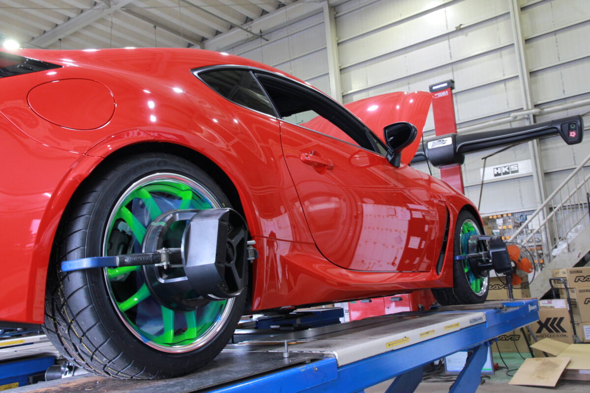 フロントキャンバー、トゥ、リヤのトゥ角の調整を施し