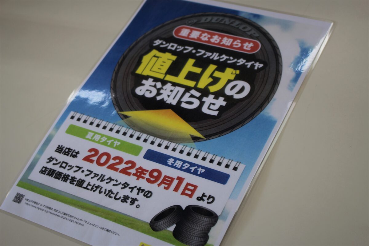 タイヤの値上げ発表・・・・・・・・・・
