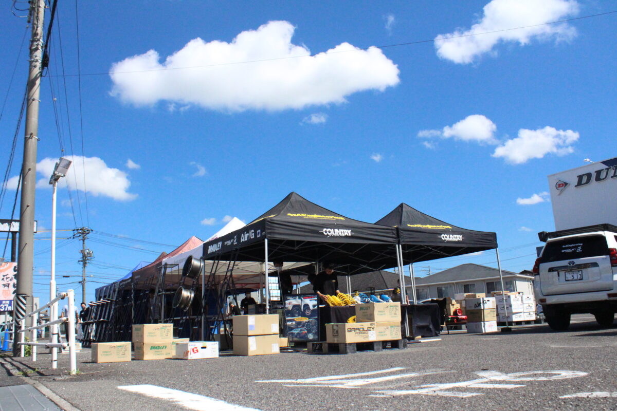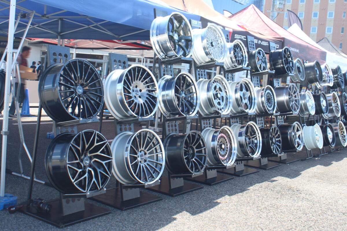 駐車場には100本以上のホイールをズラリと展示完了!!