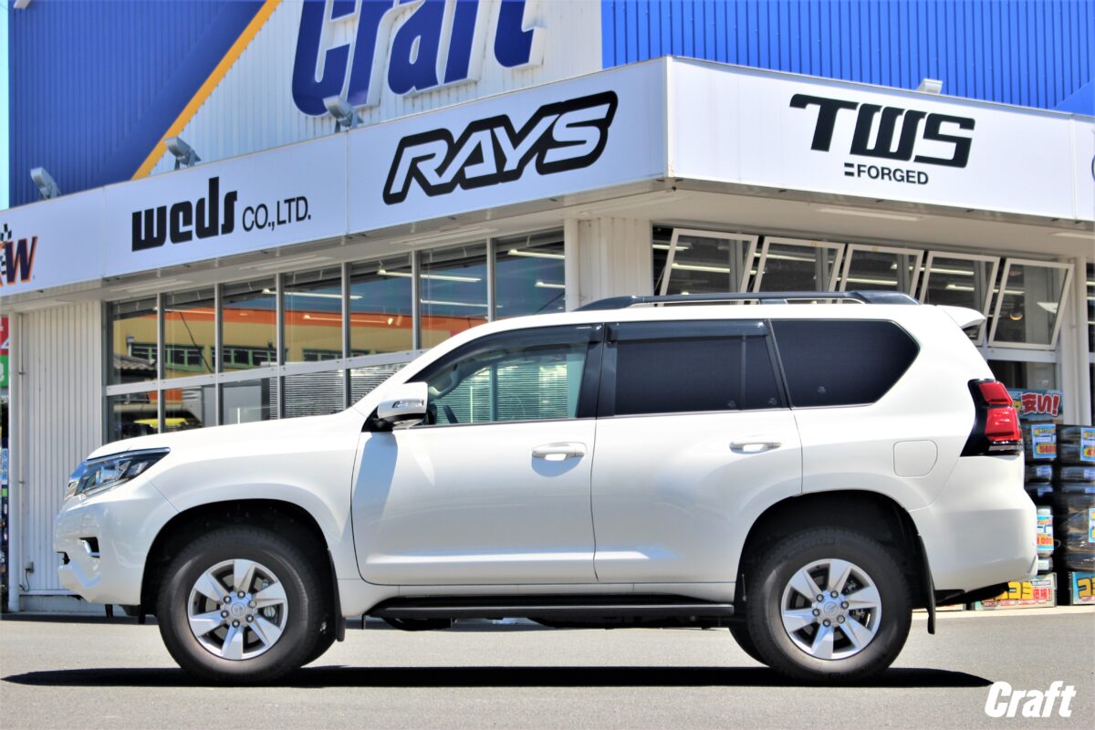 【150ランドクルザープラド】簡単リフトアップとホワイトレタータイヤでオフロード感をさらに演出!