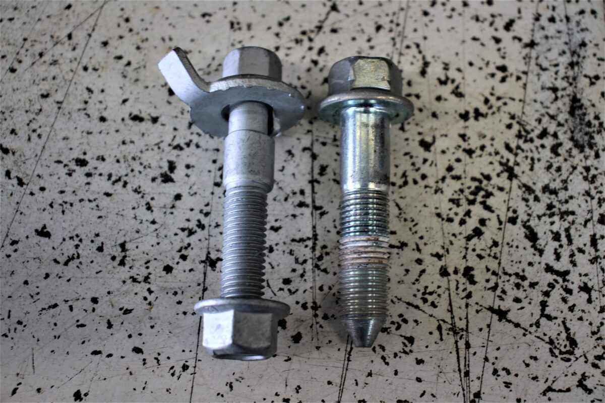 右側が純正のボルトで、左側が社外のキャンバーボルトになります。