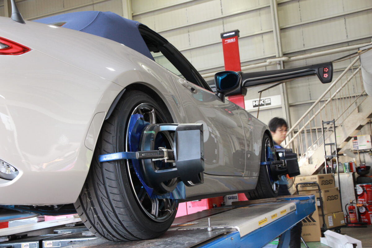前後のキャンバー角も寝かせ、調整可能箇所は全て調整を行い施工完了。
