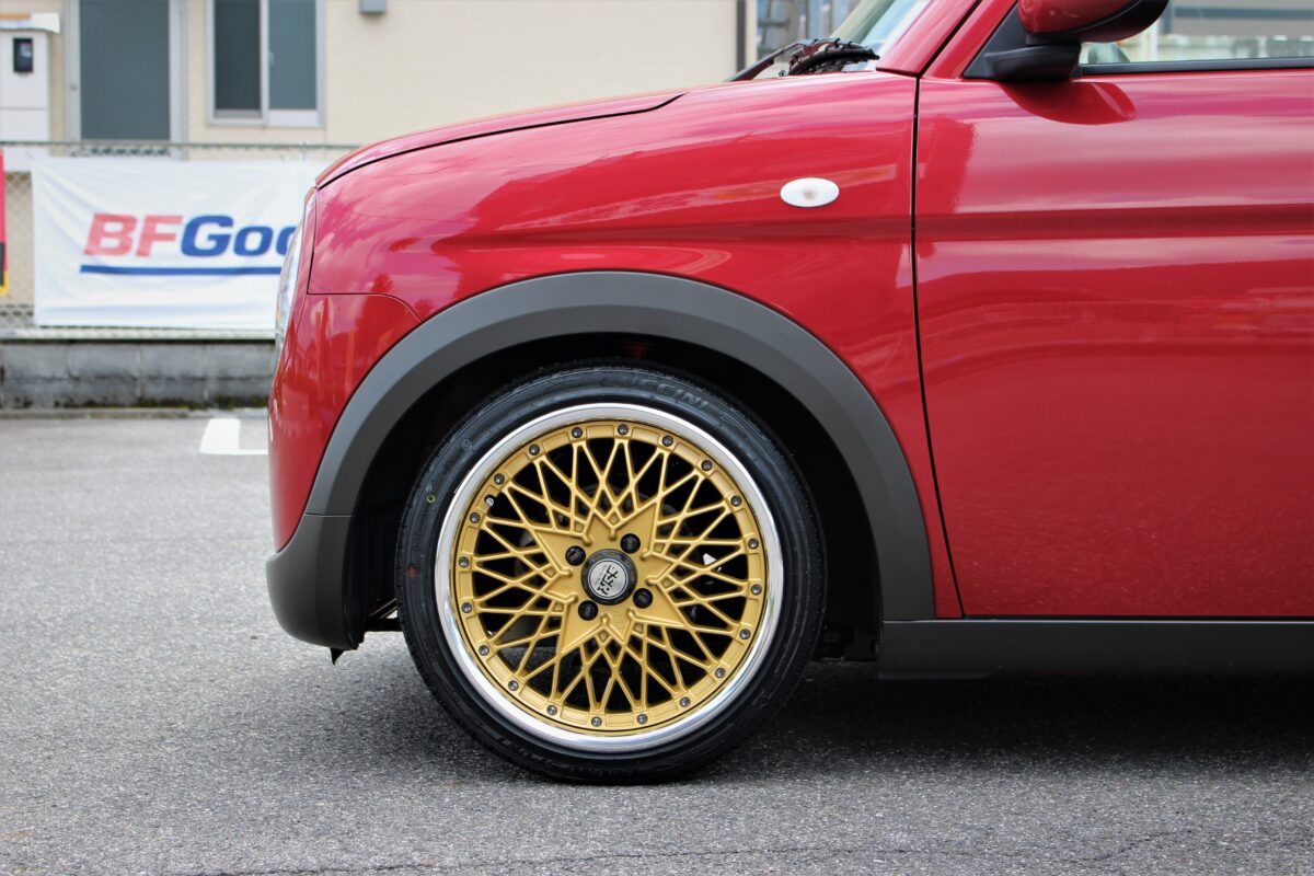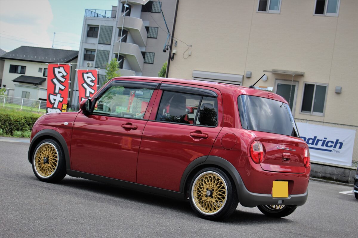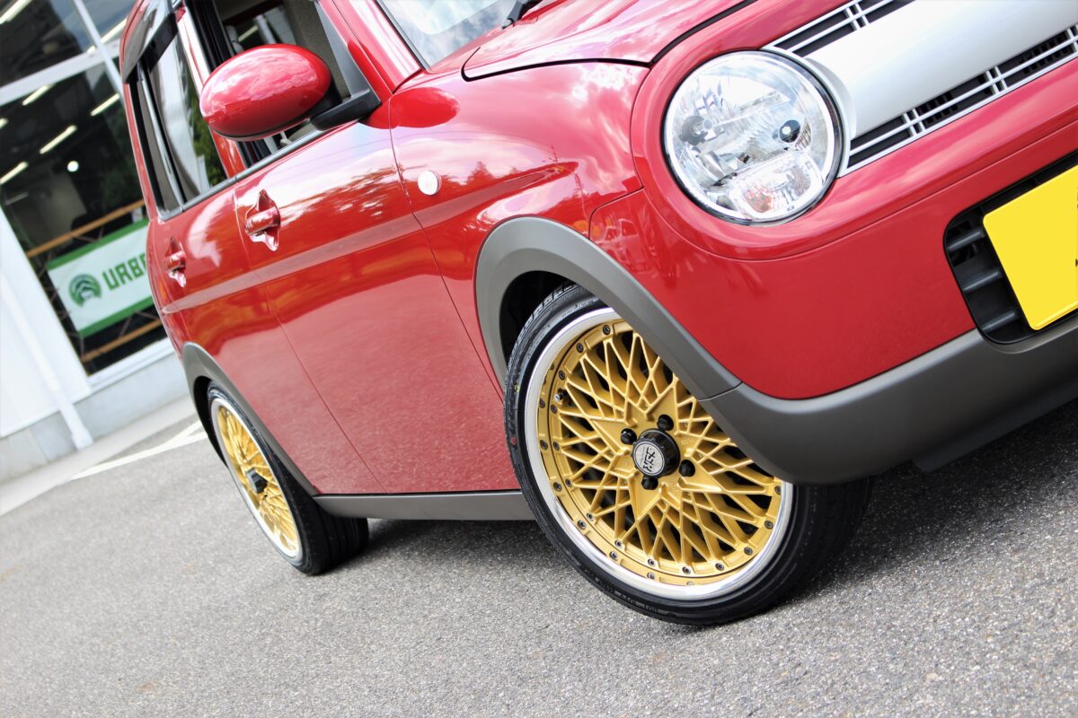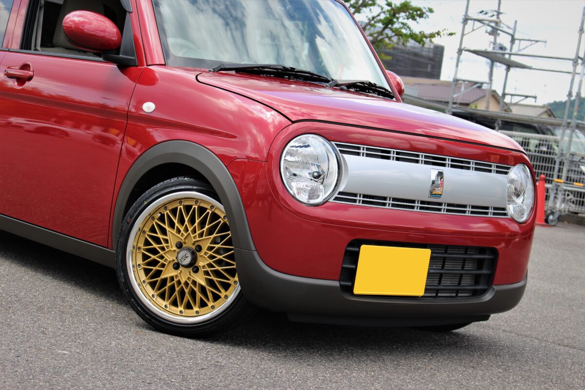 ラパンにSSR フォーミュラメッシュを16インチで装着!! どーも🔥 クラフト長良店クマザキです!!   当店はSSRがアツい!!!!!!!!! ってくらい大人気なんですよ~ 中でも群を抜いて人気なのがフォーミュラシリーズ クラシカルなデザインが注目度抜群。   本日はオーナー様から担当クマザキにブログを見たから ツライチにしてくれ👍 嬉しいご依頼を頂きました。   ツライチ担当としてオーナー様に納得のいくカスタム をご提供できるよう頑張ります🔥 オーナー様と選んだホイールはフォーミュラメッシュ。   ディスクカラーをゴールドにしネオクラカスタムで 完成予定なのでお楽しみに👍 取り付けていきます。   では取り付け前後をどうぞ 取り付け前↓ 取り付け後↓ 全体から↓ 取り付け後↓ バッチリ仕上がりましたよ~ 前後6Jで太くてツライチを狙いました。   圧巻の仕上がりにオーナー様にとても 満足頂きました👍 車高もしっかり下げることによりバランスも 完璧!!!!!! 出ヅラも完璧。 ラフにタフにピースに!! オーナー様ご来店ありがとうございました。 完璧に仕上がりましたね!!   冬タイヤも是非ボクまでご相談下さいね👏 ツライチも、もちろんですがやっぱり男の ロマンは○○J前後入れた(笑)   じゃないですかね🔥 ご相談お待ちしております。   では長良店クマザキでした。   8月14日~8月18日まで連休頂いております。 通常営業は8月19日(金) 10時30分からになります!!