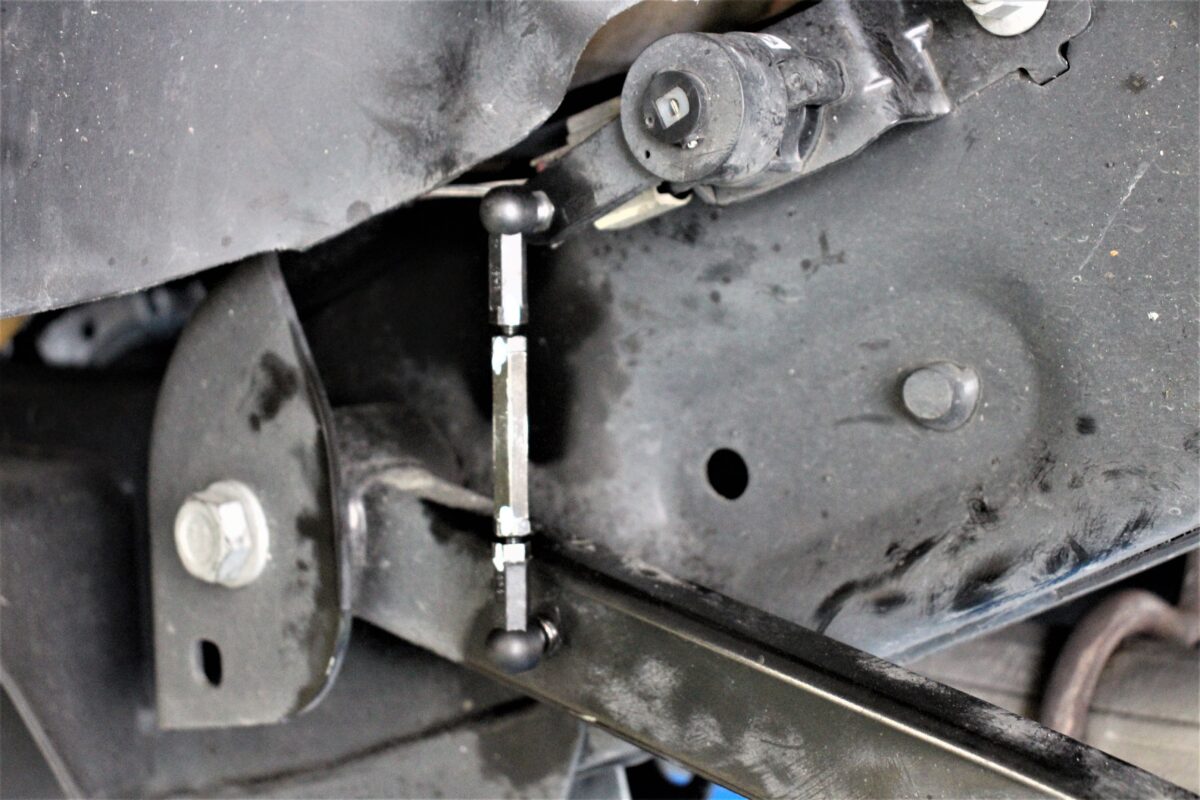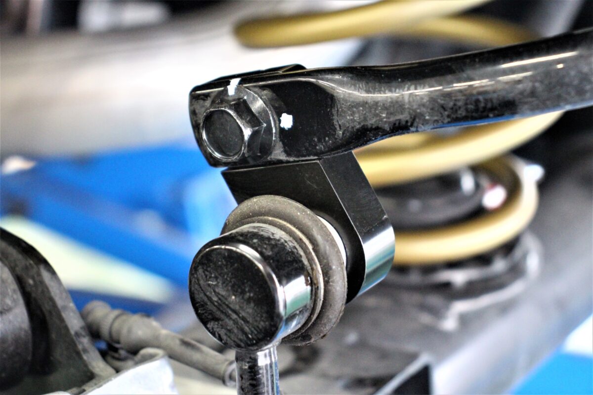 この延長ブラケットを取り付けしないと単純にスタビが下に引っ張られ、本来の動きを