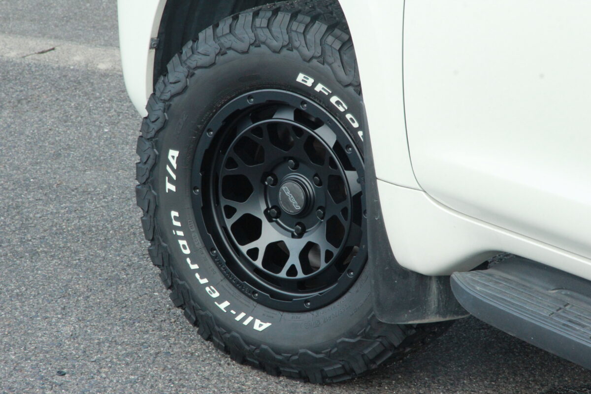 組み合わせたタイヤはオールテレーンにしては大きなブロックで人気のBF Goodrich