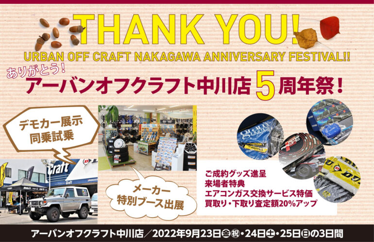 ■9/23(金)~9/25(日)アーバンオフクラフト中川店5周年祭!
