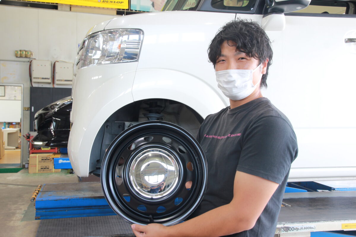 アルミホイールでは無く、今回は鉄チンホイール。