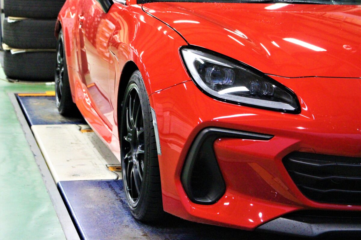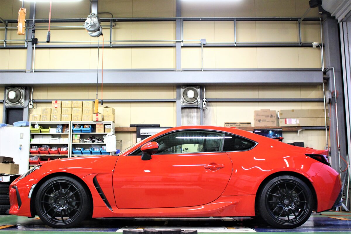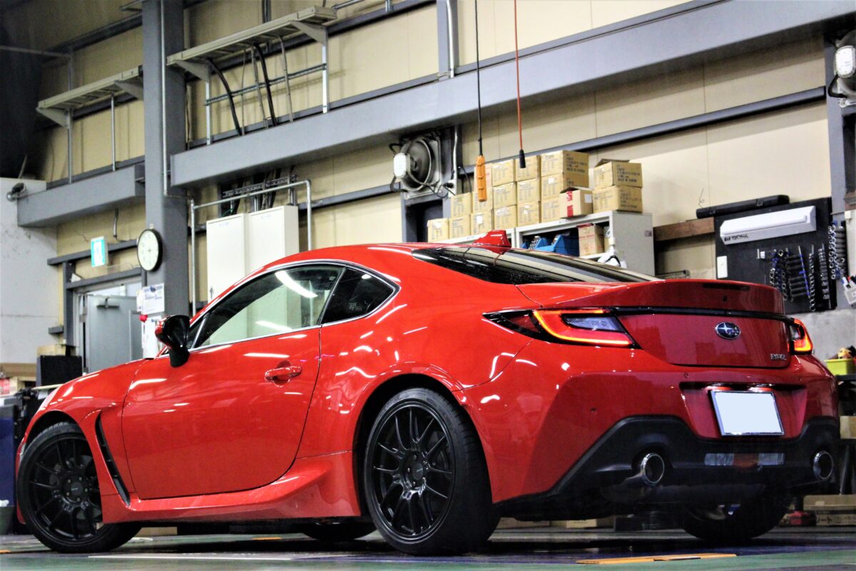 赤いボディをベースに各パーツがマットブラックで仕上げられたBRZ。