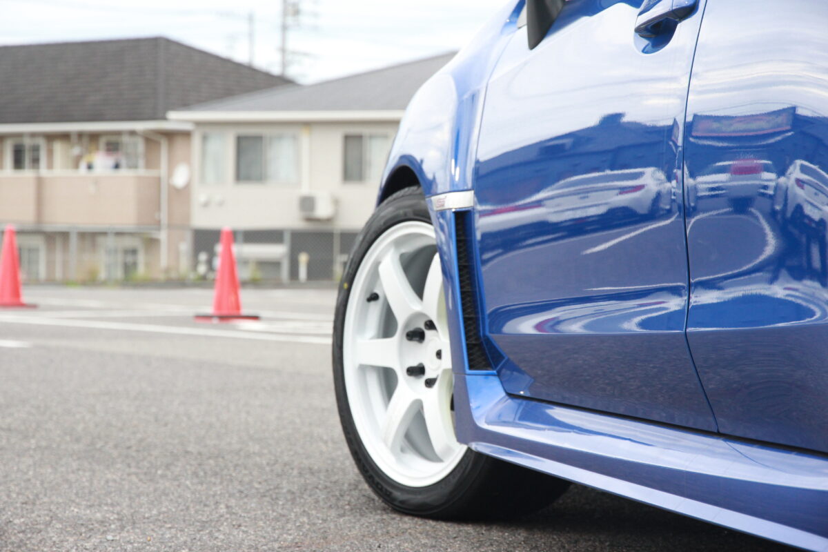 知立店名物車両のスバルWRX STIの足元を