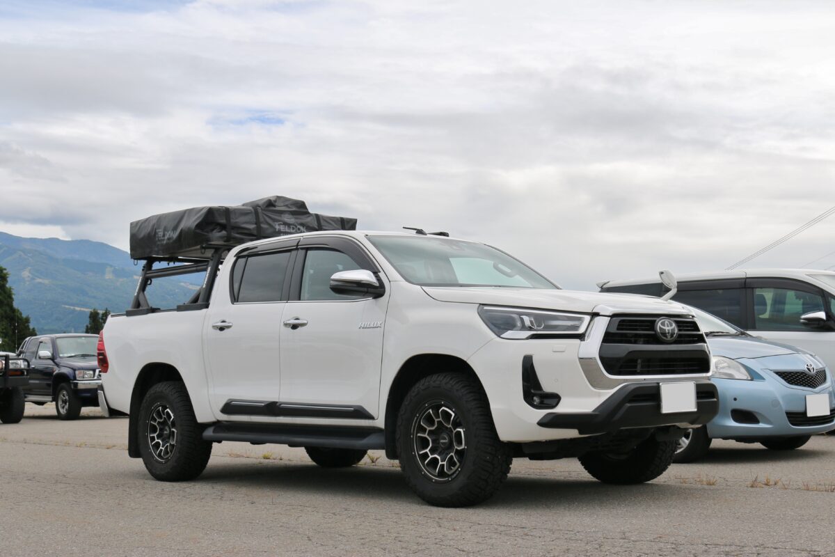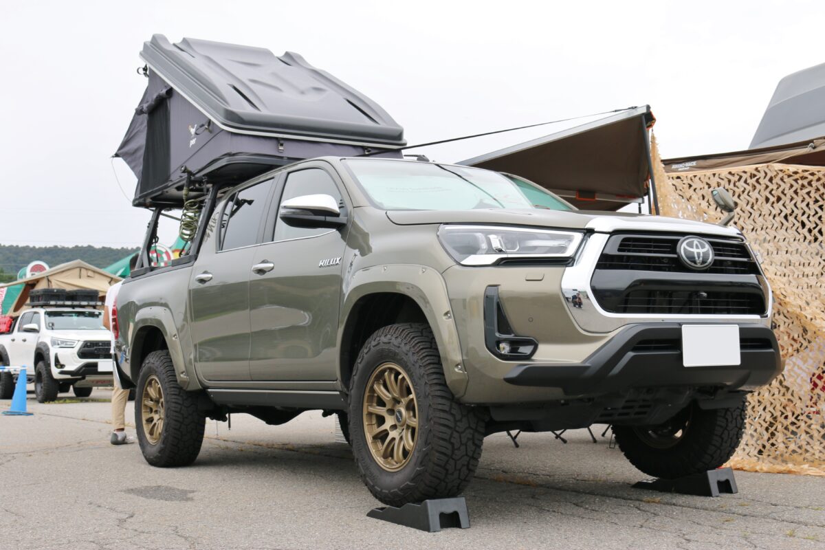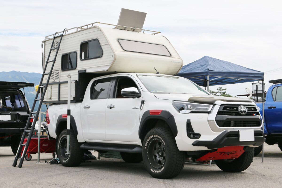 こちらは、キャンピングトレーラーを装着したハイラックス。