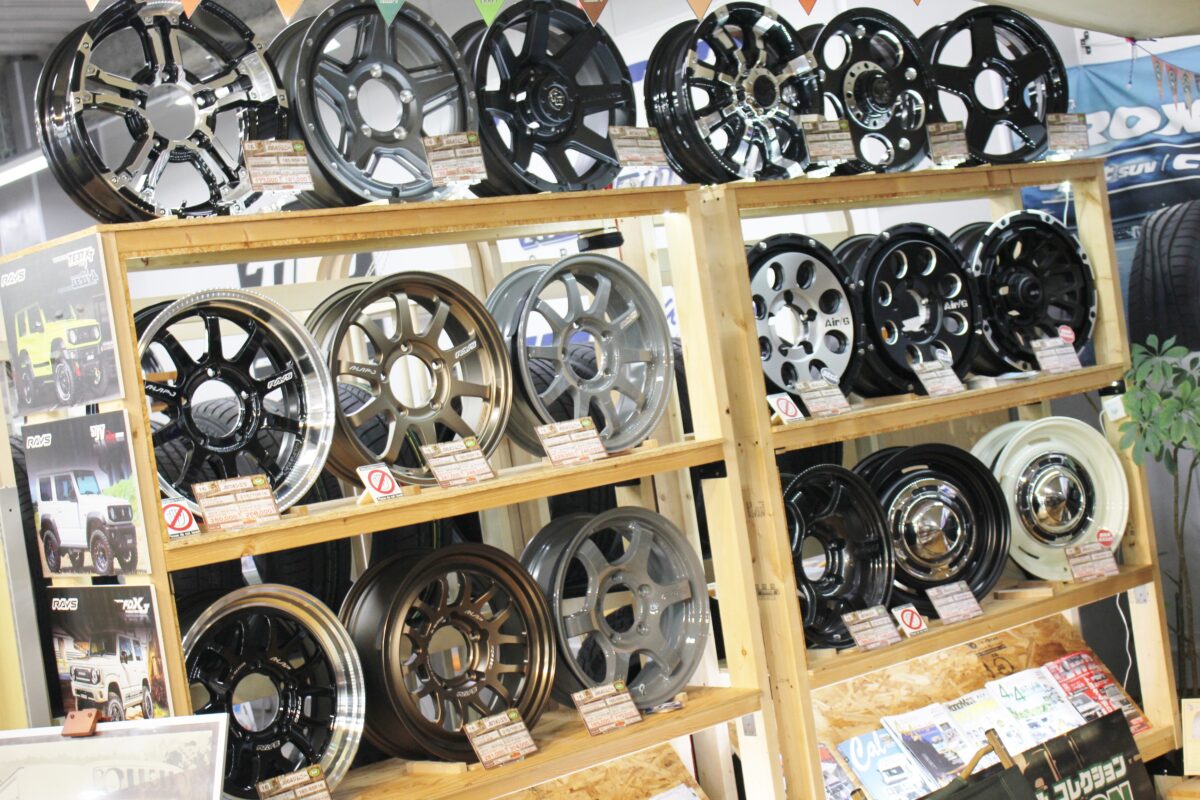 当店のジムニー&シエラのホイールコーナーは、クラフト随一の展示本数!