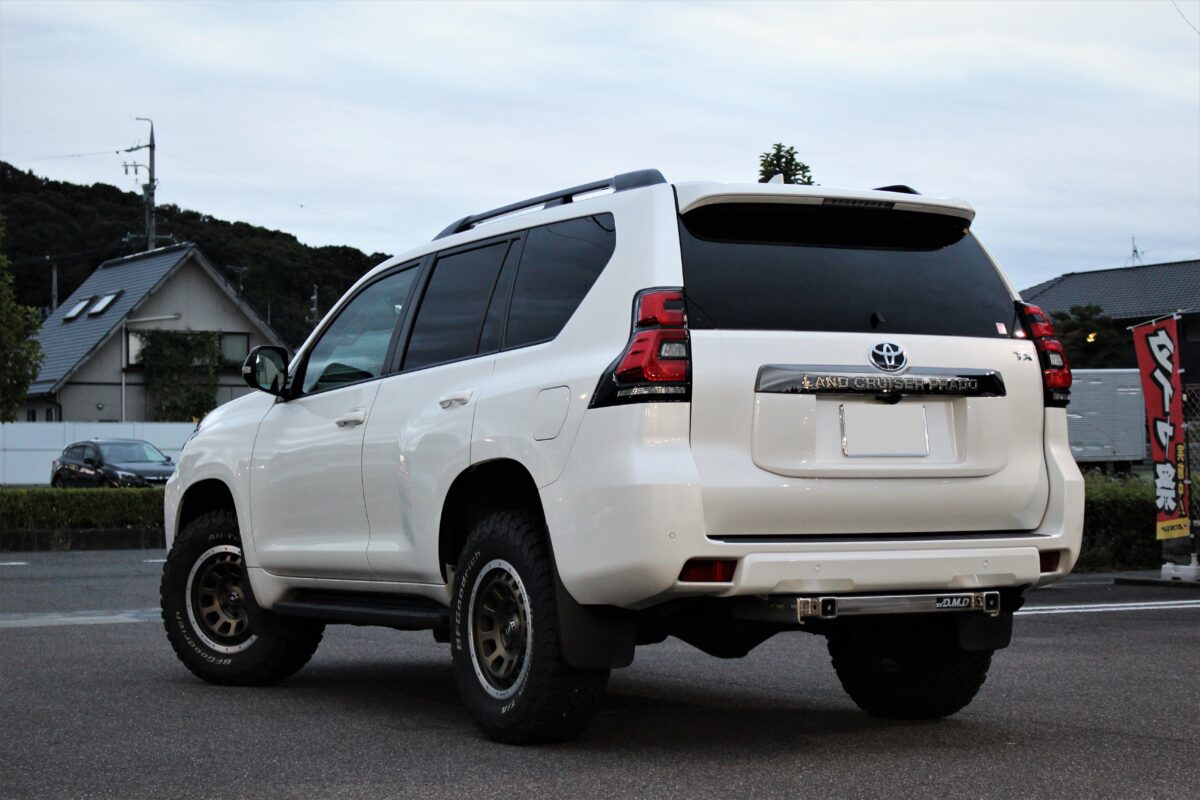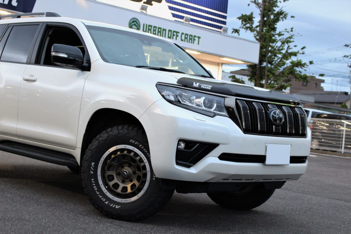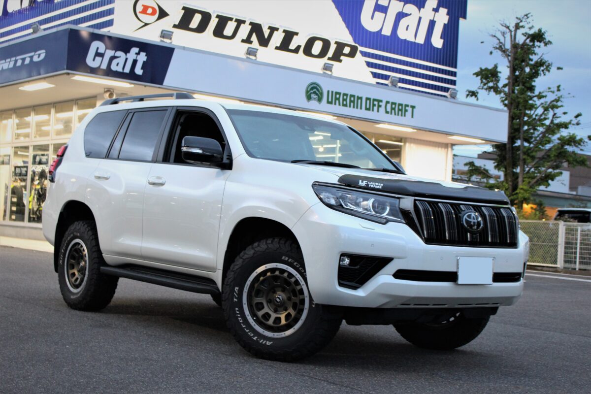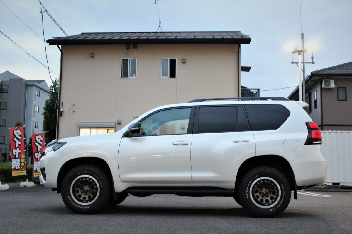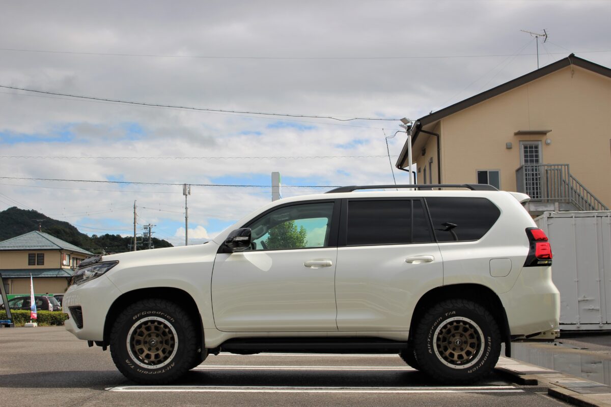 【150ランドクルザープラド】簡単リフトアップとホワイトレタータイヤでオフロード感をさらに演出!