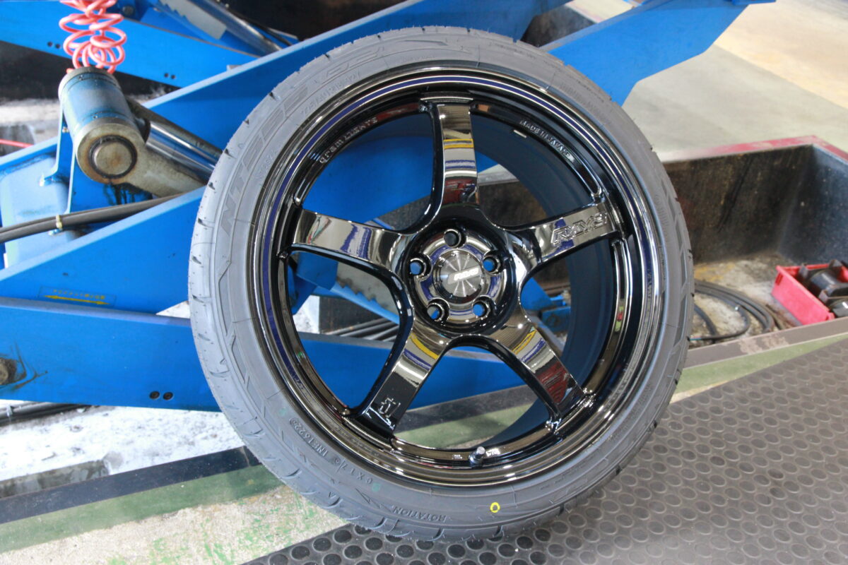 定番の225幅で用意したので8.5J幅と組み込んでも引っ張り過ぎないスタイルに