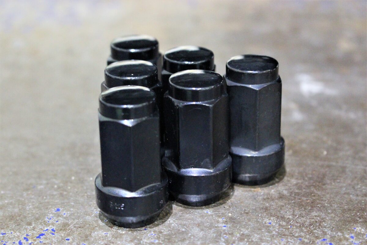 社外ナットをご用意。ホイールカラーに合わせブラックで統一。