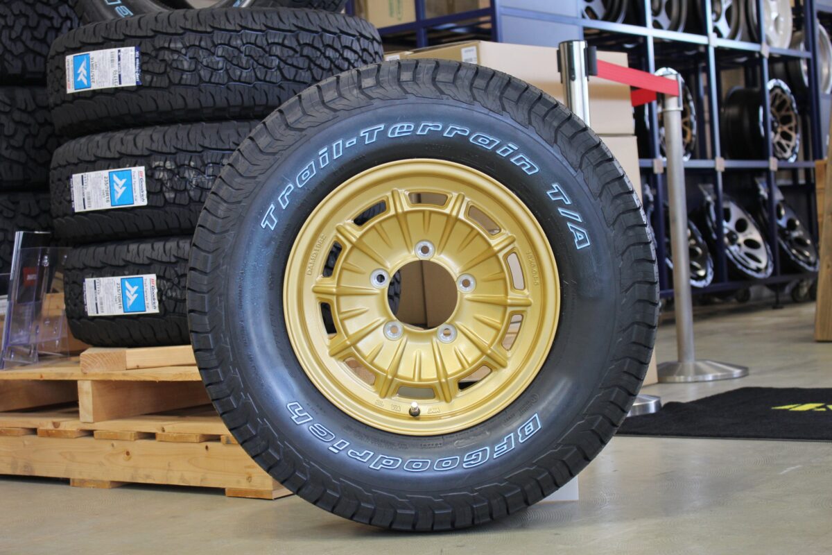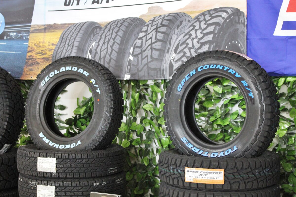人気のジオランダーATやオープンカントリーRTのホワイトレターも展示しています。