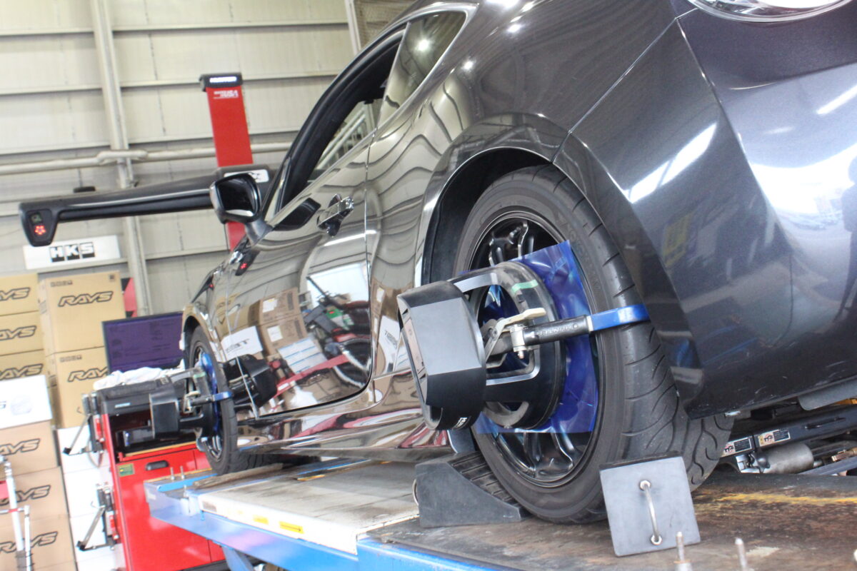 4輪のアライメント調整作業へ。