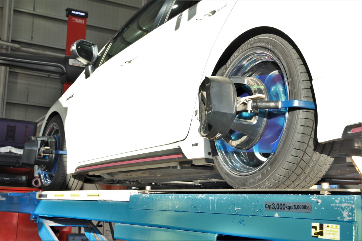 ローダウンやタイヤサイズ・ホイールサイズに伴い変化したアライメントを適正値へ調整します