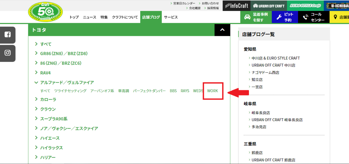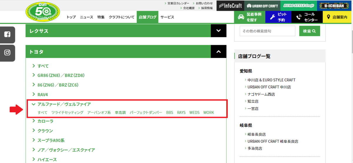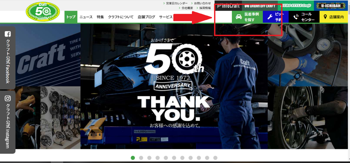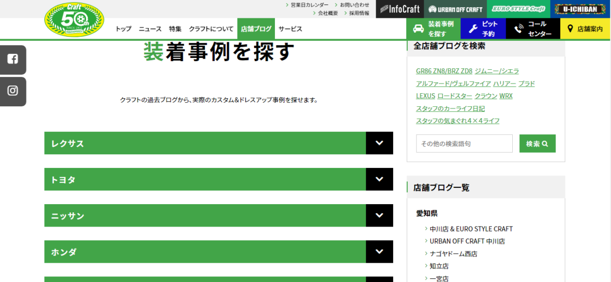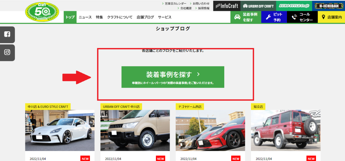 もしくは各店ブログ一覧画面の一番上の「装着事例を探す」をクリックです。