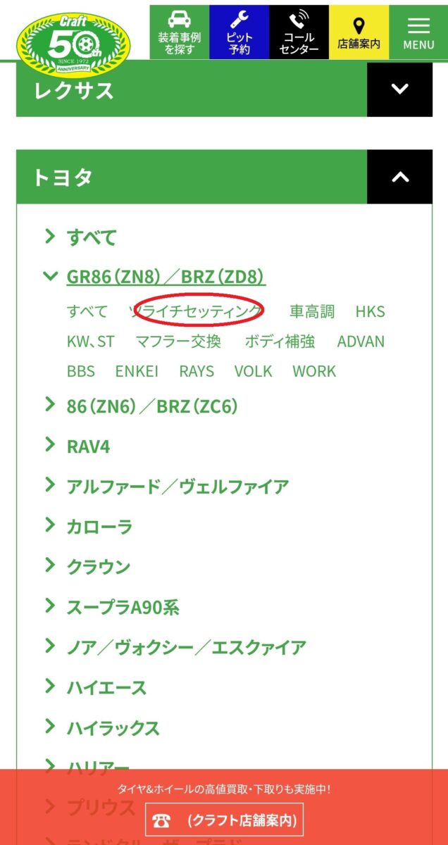 今回はGR86(ZN8)/ BRZ(ZD8)を選択していきます。