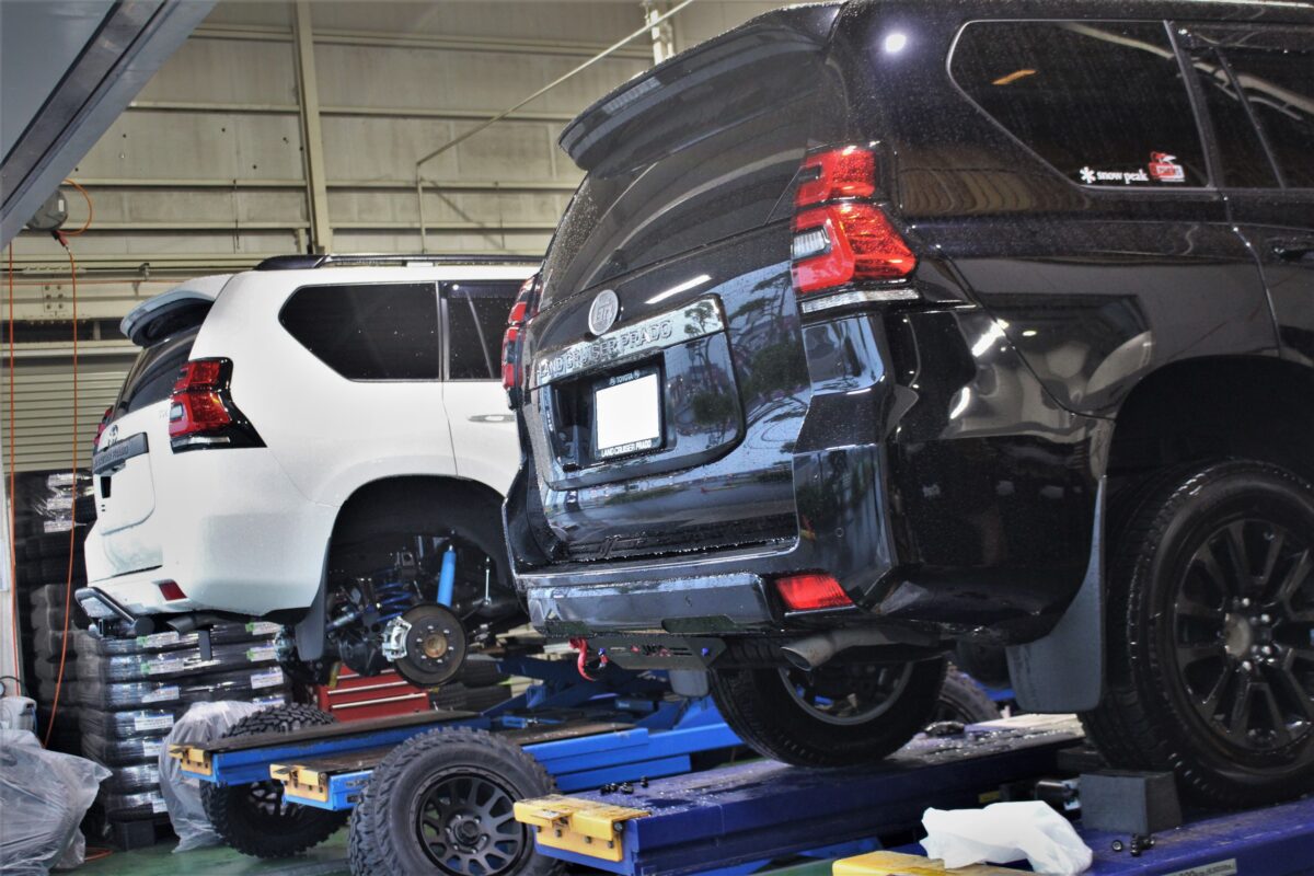 隣にも150プラドが入庫し作業中。