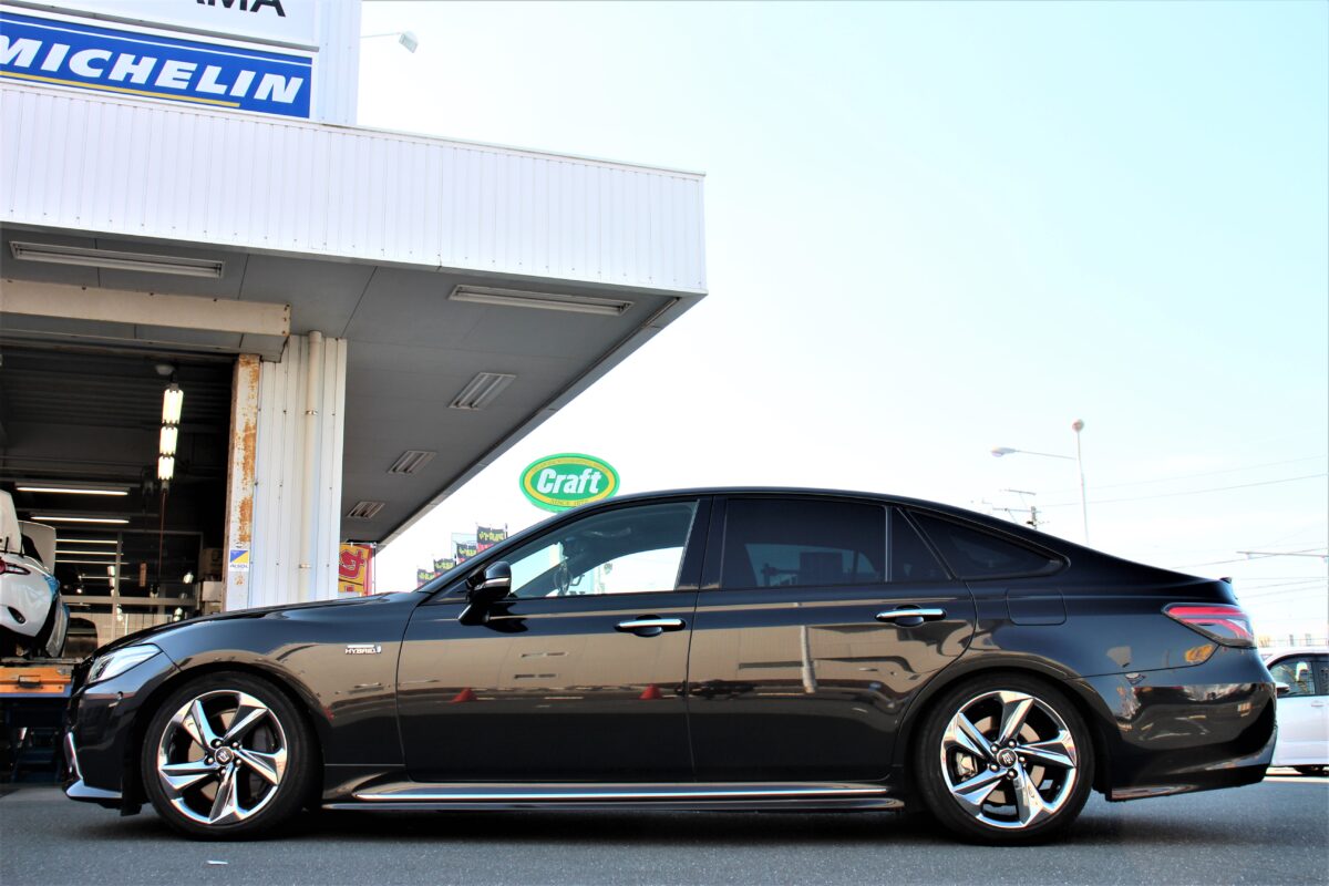 当店で車高調を取り付けさせていただいた220クラウン。 今度は理想のツライチ仕様にしていきます。   皆さんこんにちはクラフト厚木店のりかずです。   ノーマルの220クラウンでご来店いただきましたI様。   I様の220クラウンはモデリスタのエアロにモデリスタの19inchのホイールを装着しており、   これだけでも、十分決まっています。   しかし、I様の理想はまだまだのようでした。   お話を聞くと内容にワクワクが止まりませんでした!!!   その内容は、車高調でガッツリ下げて、ホイールをガッツリツラに持っていきたいとのことでした。   そう言ったご相談は大好物です!(笑)   I様の理想ためにやっていきますよ~!   では、完成した姿が気になる方が多いかと思うので早速完成した姿をご覧いただきましょう!どうぞ↓     車高調はRSRの「ベストI アクティブ」 純正のAVS機能を生かす事が出来る車高調になります。   ちなみに車高は地上高ギリギリでセッティングしております!!   モデリアスタのエアロがより一層低く見えるようになりましたね。   モデリスタ最高です(笑)     ホイールはWORK VSーXV。カラーはシルキーリッチシルバー、白ボディーとの相性は抜群!   タイヤはファルケンのFK520L。トレットパターンがシンプルでかっこいいので僕のおすすめでもあります!   3ピースのホイールになるので、クラフトお得意、実車計測をしてサイズを決めていきます。   220クラウンは前後でサイズを変えて装着することが多いので、車高の高さや、タイヤの引っ張り具合など、   バランスを見て決めないとかっこよくは作れませんのでご注意を。     今回の仕様はステップリムで深リムに仕上げましたよ~!   なぜステップリムを選択したかと言いうと、   少しでもリムを深くできるからまた、ステップリムでリムを深く取れると最高にかっこいいからです✨     ちなみに今回のリムの深さは60mm程の深リム。   タイヤの引っ張り具合も前後で同じぐらいになっていますのでバランスはとてもいいですよ!   クラウンはローダウンを行う事でキャンバーがついてくれるので見た目も抜群にいいです。。。(´;ω;`)     オーナー様もこの仕様変更には大満足!   同じ様に仕上げたいオーナー様はぜひクラフトにお越しください!   I様この度はクラフトをご利用いただき誠にありがとうございました!!   これで仕事仲間にも自慢できそうですね!!(笑)   またのご利用お待ちしておりまーす!!