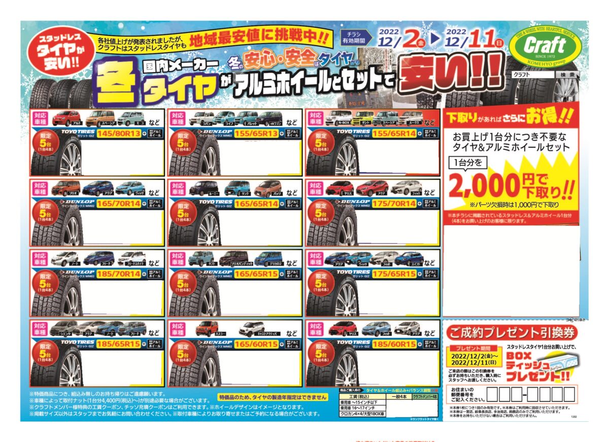 スタッドレスタイヤのこともクラフト多治見店にお任せ下さいヽ(^o^)丿