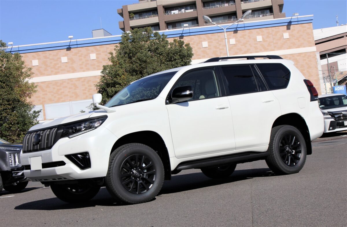 グリル、ドアミラーなどマットブラックカラーで加飾した特別なプラド。