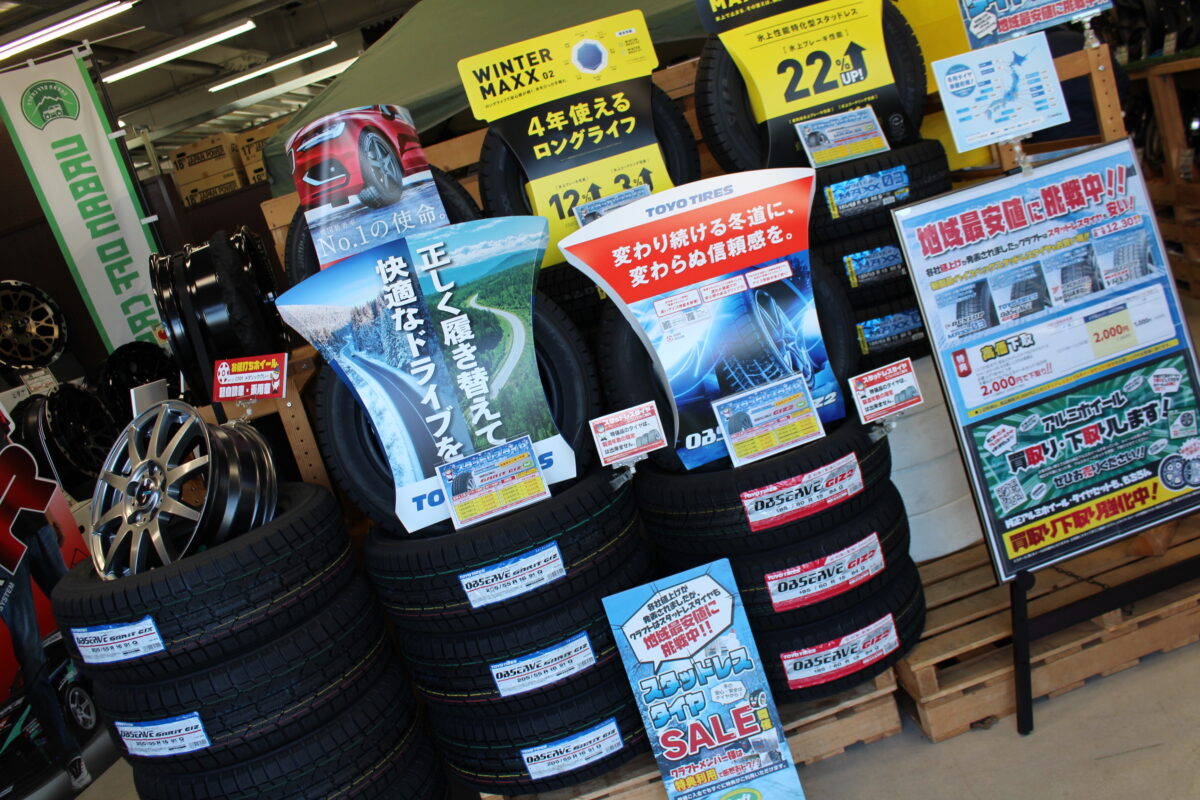 定番サイズからSUVサイズまで、最終日もスタッドレスをご用意して