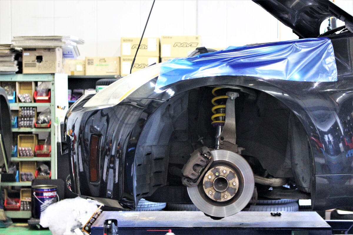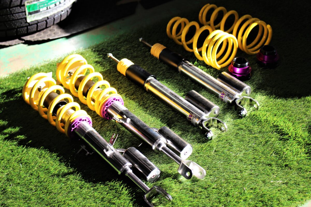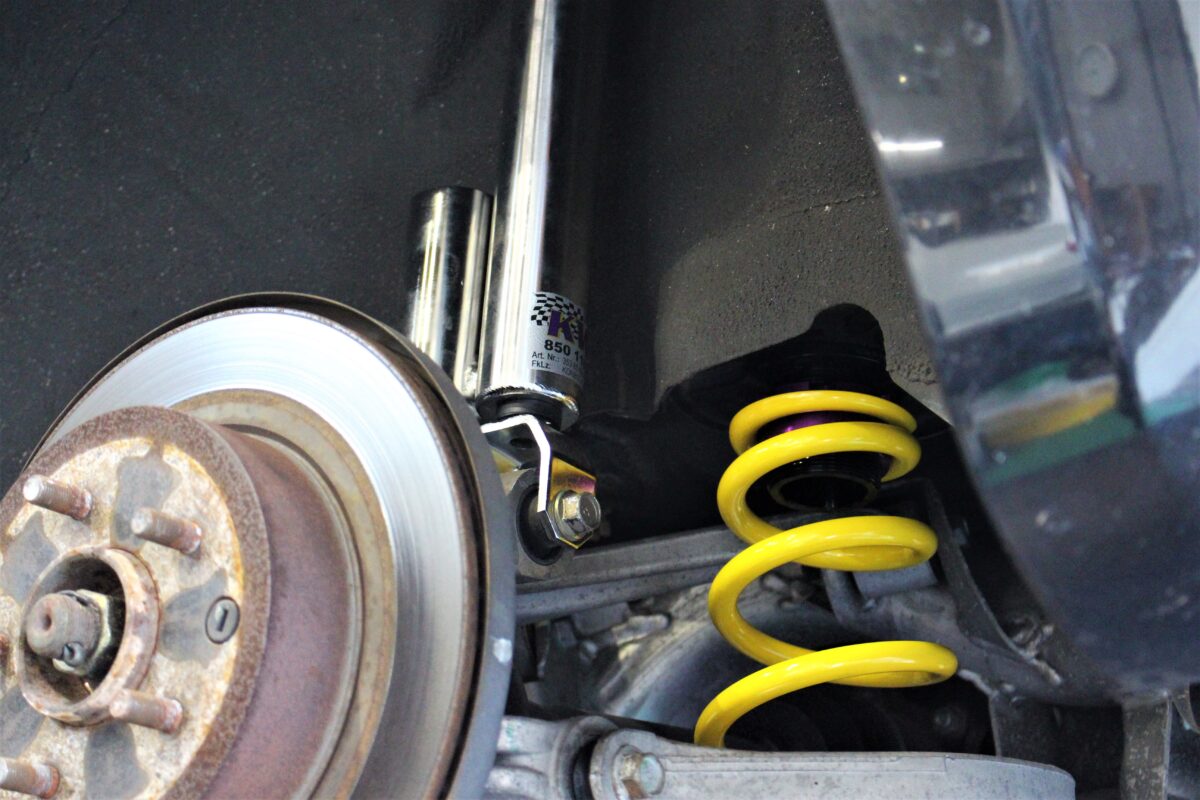 スポーツ走行にバッチリ対応したダンパー。アッパーマウントは純正を使用。