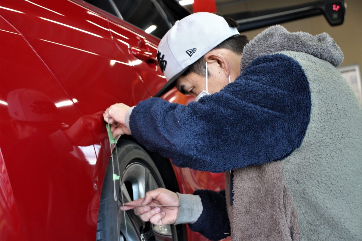 このアライメント作業で、お車の最終的な形が決まり使えるホイールサイズの太さやリムの深さが変わってきます。