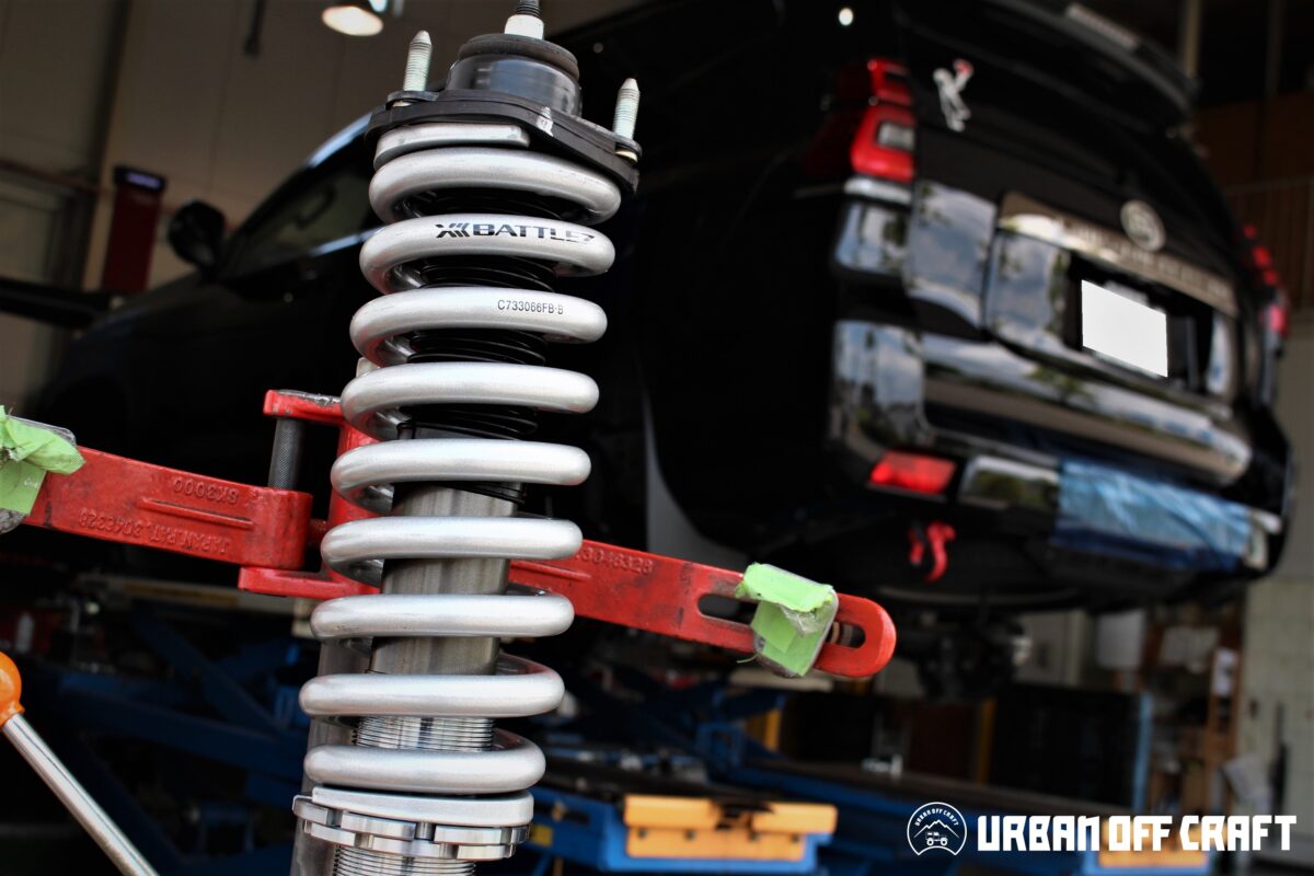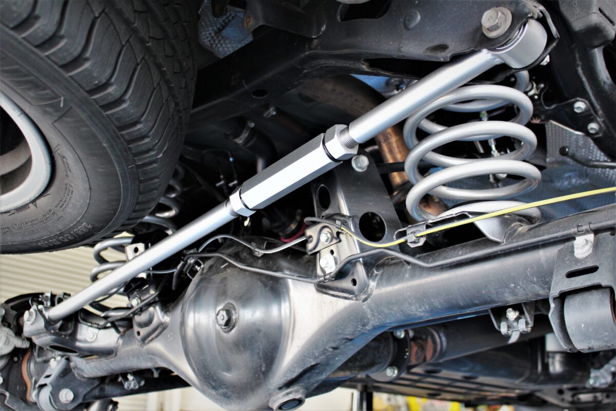 リアは調整式のラテラルロッドで左右の出面を均等に調整。