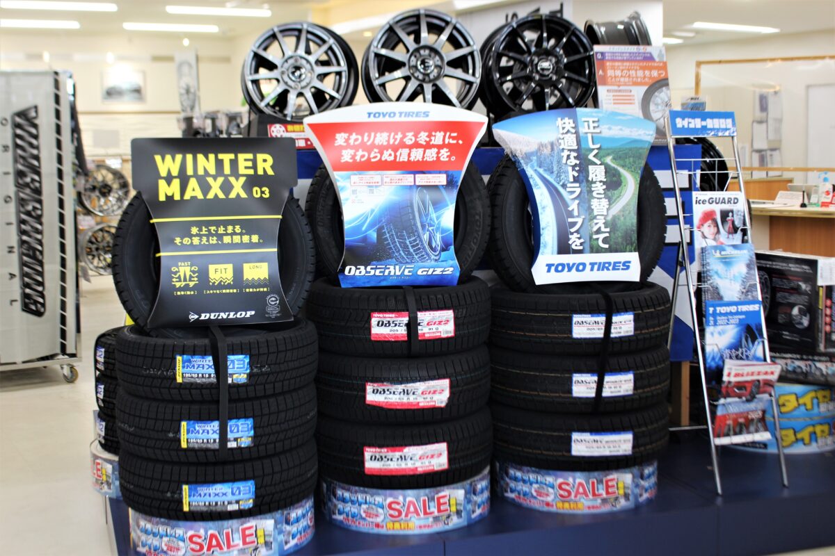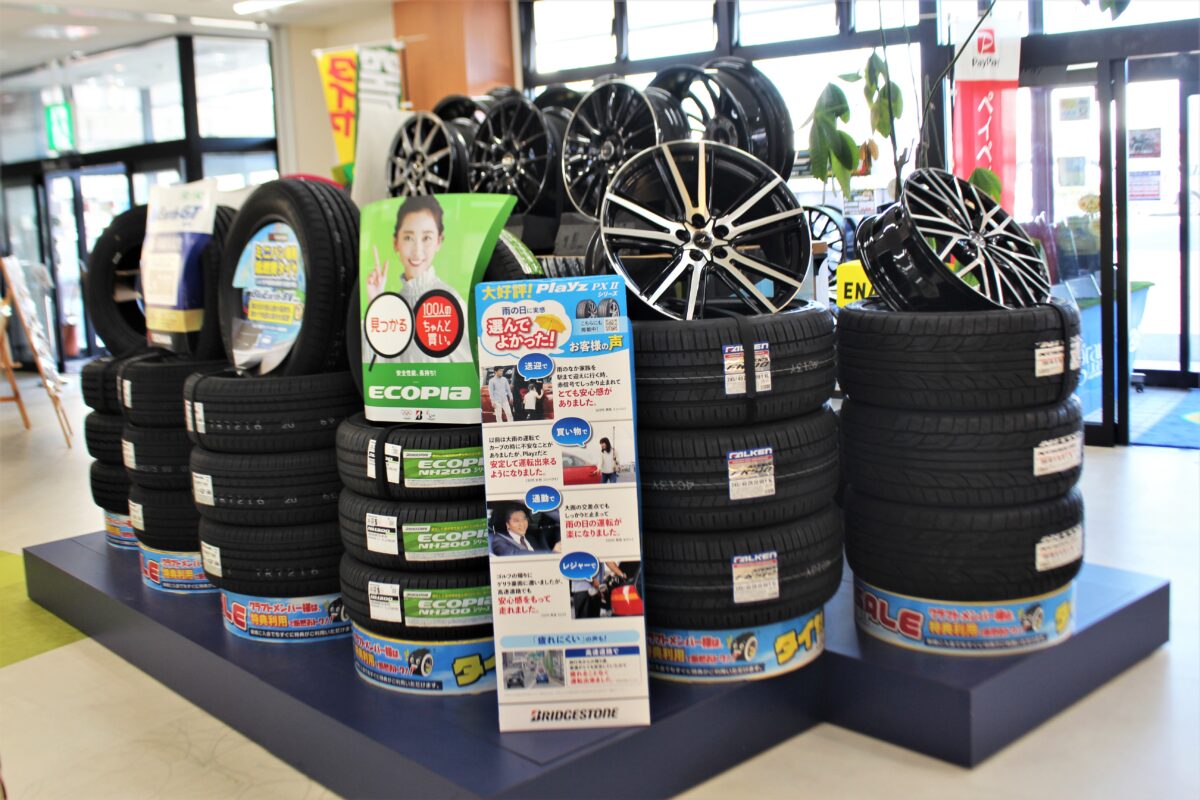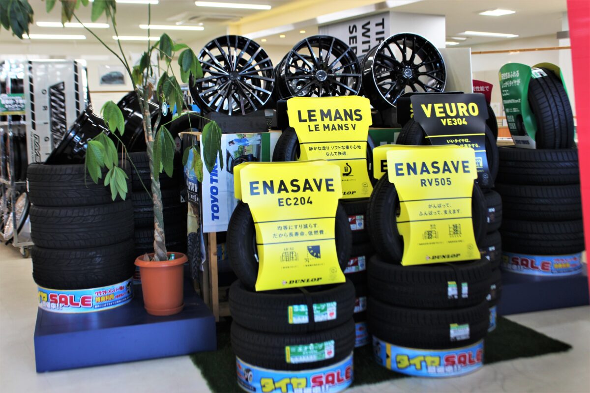 加えて、入口近くにはダンロップタイヤの人気銘柄を配置させて頂きました(*^^)v