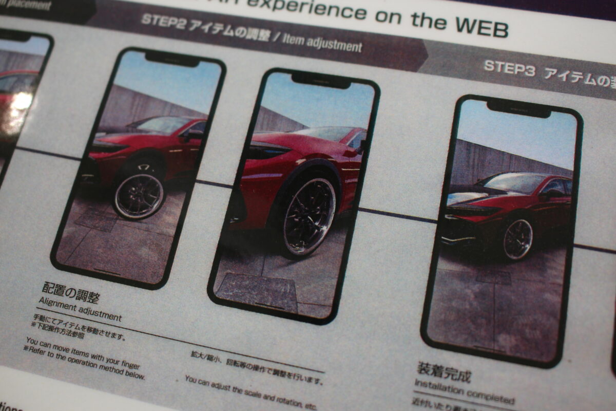 QRコードを読み込むと、ARが起動し現車にホイールを合わせることが出来ます( ̄ー ̄)